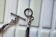 石自体も様々なお色が混じりあって味わい深いネックレスになっておりますし、あまり目立たないのですが、たくさんの種類のシルバーやゴールドビーズを挟んだ贅沢仕様でございます。大人の女性に是非おつけいただきたいネックレスです。