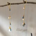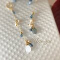ロイヤルブルートパーズ、ベビーパール(本真珠)、ホワイトジェイド、ラブラドライトのロングピアス