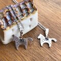 幸せを呼ぶ馬といわれる北欧のダーラナホースをモチーフにしたネックレス。