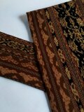 こちらのイカットは、帯用として織られたのではなく、ベットカバーなどのクロスとして織られた物です。ですから、帯用より織りが少し甘く、糸が太いと思います。