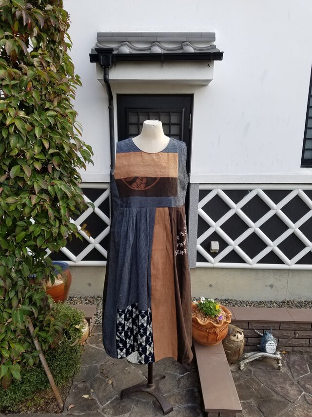 着物リメイク 手作り かすり、ふろしき、型染め いろいろ ジャンパースカート