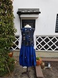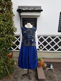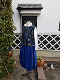 ベストサイズは、着丈51 肩幅42.5 脇下周り96センチ 藍色の旗にかわいいかすりをパッチしたバルーンスカートになります。