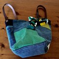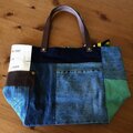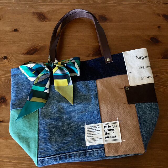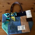 最新作☆デニム&倉敷8号帆布トートバッグ Mサイズ classy茶革リボン#04