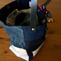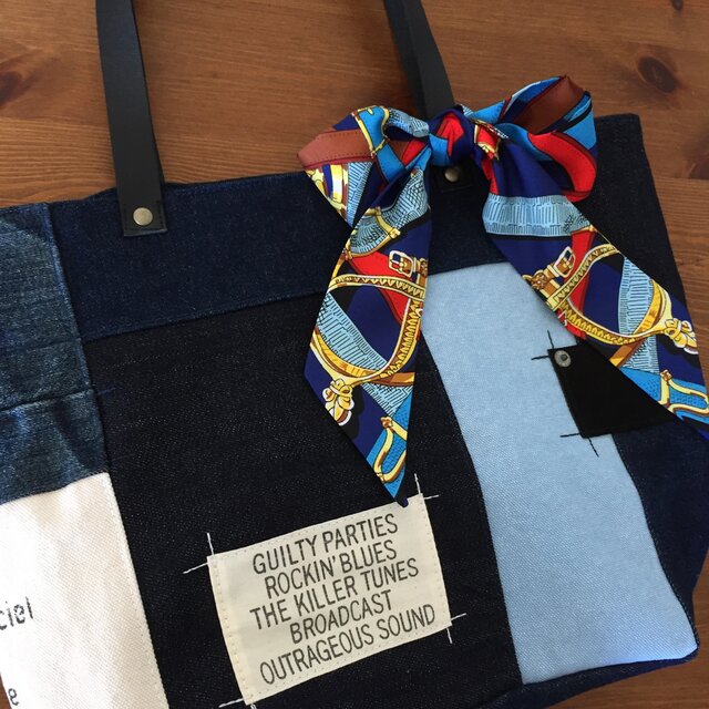 最新作☆デニム&倉敷8号帆布トートバッグ Mサイズ royal黒革リボン#05