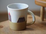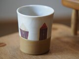 いろいろな形の家を描きこんだ陶のコーヒーカップです。