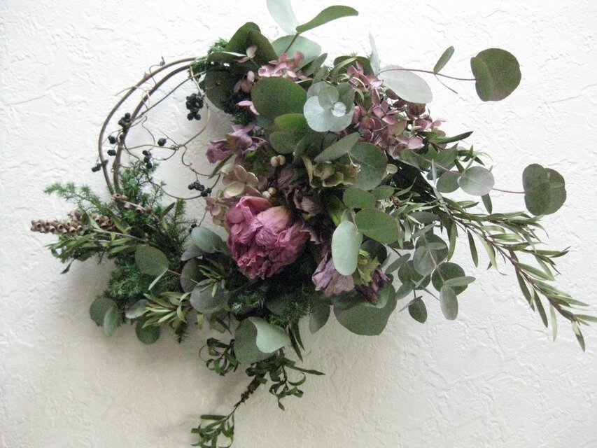 リースはできるだけ直射日光や湿気を避けて飾って頂くことをお勧めします。