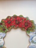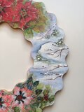 2種類の花の色のポインセチアの向こうに冬景色をえがきました。