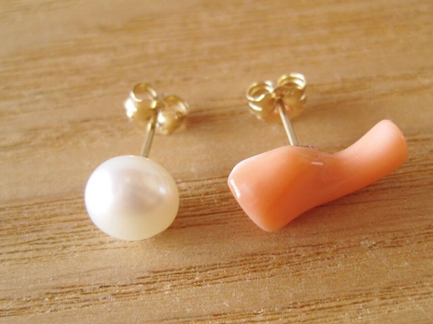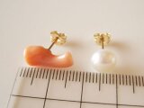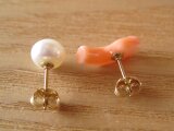 天然珊瑚&淡水パールのピアスset/Hawaii coral&Fresh water pearl 14kgf