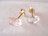 シャンパンカラートパーズ&ダイヤモンドクォーツの原石ピアス/Pakistan 14kgf