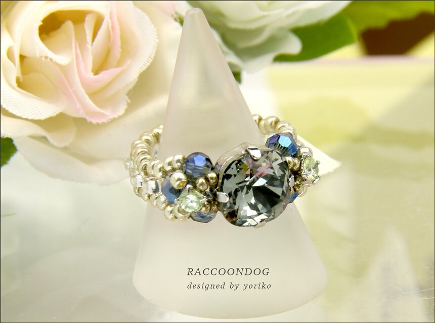 ビーズ,リング,コスチュームジュエリー,ビーズアクセサリー,ビーズアクセ,スワロフスキー,ビーズリング,ジルコニア,アクセサリー,クリスタル,ブラックダイヤモンド,ブラック,ダイヤモンド,黒