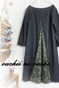ウール・カシミヤ混の千鳥調の黒&チャコールの生地と大人気柄リバティWild Flowersワイルドフラワーズ ブラックグリーン系でAライン後ろ切り替えワンピースをおつくり致します。