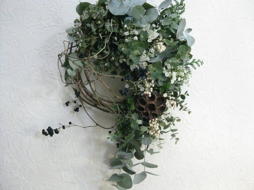 ナチュラルななかにも、シンとした冬の景色を感じるリースに仕上がりました。