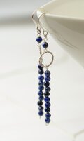カットが綺麗な3.5ミリのラピスラズリと10ミリのデザインフープを繋いだストレートラインがお洒落なピアスです。