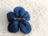 ブルーミックスのキッドモヘアと紺色のシルクウールを編み機で編んだニットのブローチです。