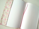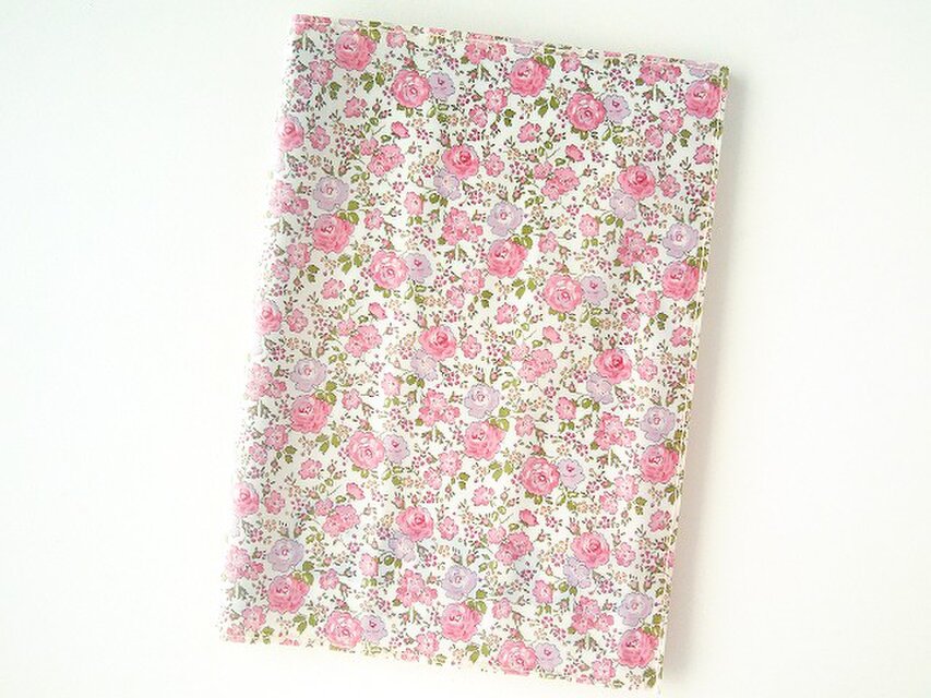 リバティの人気生地、フェリシテ Felicite(ライトピンク)のラミネート生地(つや無)でB5サイズ(大学ノート)のノートカバーを作りました。