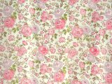 生地の色が生成り、花の色がライトピンク、ライトパープル、葉の色がライトモスグリーンです。