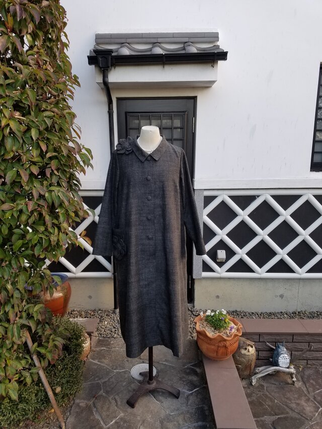 ご覧頂きありがとうございます。 本場の結城をリメイクして花付きのワンピースを作りました。
