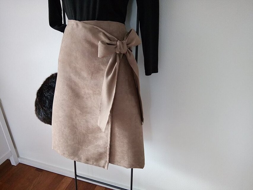 ★まるで鹿革★フェイク・スウェードの巻きスカート風★リボンでキュッと引き締め!★