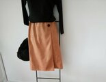 ★着物リメイク★紬(つむぎ)正絹★だいだい色の巻きスカート風★4シーズン★