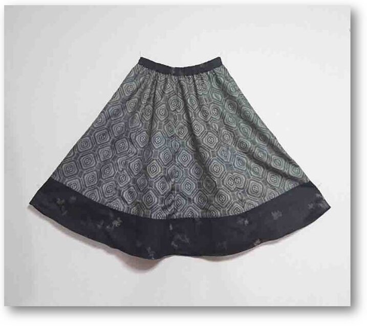 146 大島紬着物と黒着物リメイクギャザーフレアスカート