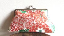 ★がまぐち・角型 大 オレンジ丸菊柄 ×オフホワイト帯地★