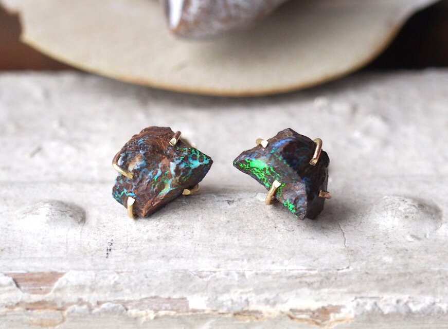 素材:ボルダーオパール(オーストラリア産)・真鍮・K14ゴールドフィルド(ピアス針・キャッチ)