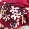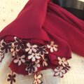 大判のストールを華やかに盛り上げてくれるモチーフを選んで、デザインしました。