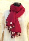シングルカラーのパシュミナを引き立てるオヤのモチーフ。
