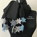 送料無料 レースのモチーフ付き パシュミナストール PS135 ブラック