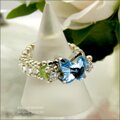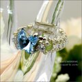 (一点物)スワロフスキーアクアマリン蝶々のリング【スワロフスキー&ジルコニアのバタフライビーズリング】