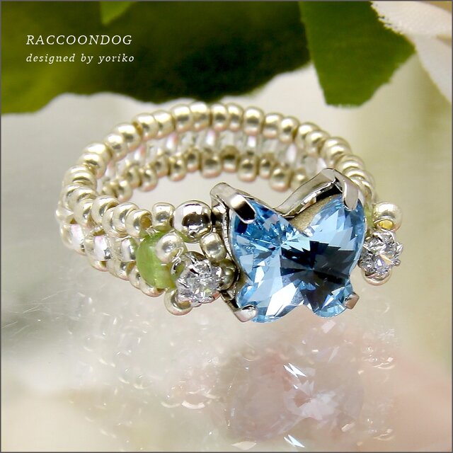 ビーズ,リング,コスチュームジュエリー,ビーズアクセサリー,ビーズアクセ,スワロフスキー,ビーズリング,アクセサリー,ジルコニア,キラキラ,クリア,クリスタル,アクアマリン,ブルー,蝶々,バタフライ