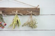 自家製ドライフラワーを古材風に加工した板にセットしました。