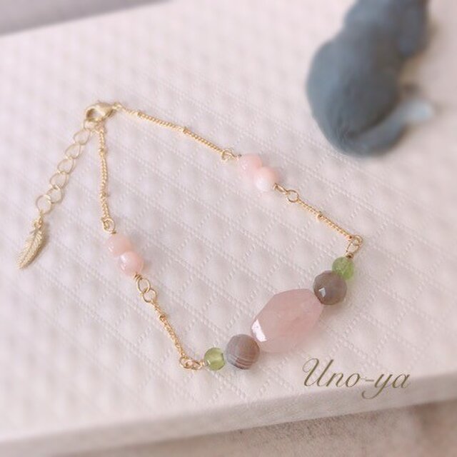 氷砂糖のような優しいピンク色のモルガナイトのラフカットストーンのブレスレット♡