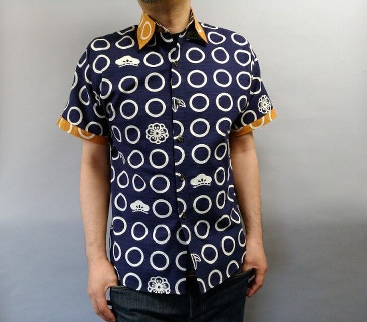 両面刷りの生地に蛇の目に松竹梅が描かれた粋なシャツ