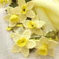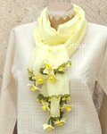 【再販】立体レース 花のコットンストール「水仙/2辺」レモンイエロー