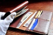 コバ面は磨き・焼きこみ・蠟引き、ワックスを繰り返し施し、時間をかけて、磨き上げていきます。コバにも、染色して、磨き上げています。