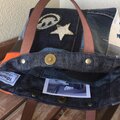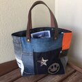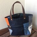 最新作☆デニムコラージュトートバッグ Sサイズorange茶革ワッペン#06