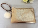 お客様から通帳を入れる派手すぎないゴールド素材でポーチを作って欲しいとのリクエストを生かして仕立てました。