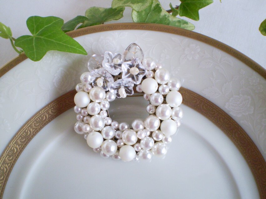 サイズ違いのパールをたくさん使用した清楚なブローチです。