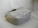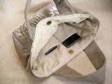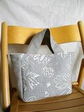 イギリスのインテリアファブリックの大柄プリントとグレージュリネンのトートバッグ