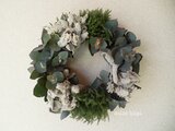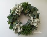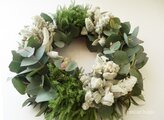 フレッシュなユーカリにラムズイヤーや日陰カズラなどを組み合わせたGreenWreathを作りました。お手元にお届けする頃にはドライになってより一層シルバーグリーンになります、また数年ほど経ちますといい感じのセピアになります。