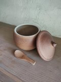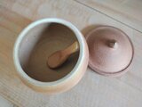 スプーンを中に入れて使う場合、木製だと黒ずんだり、金属製だと錆び付いたりする事がありますが、陶製はそういう事がありません。