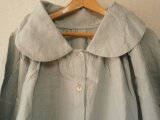 ★en-enフランスリネン・大きな立ち襟・ギャザースモックワンピース・ブルーグレー