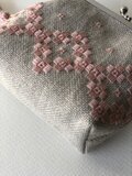 亜麻色のリネンにさくら色の刺繍糸で