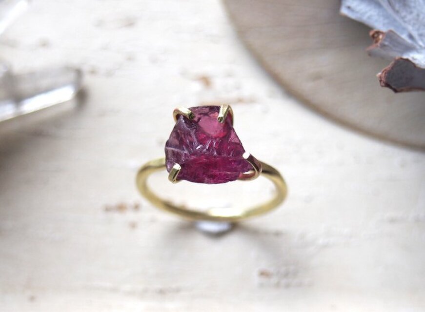 ナチュラルな形をそのままに4本の爪で留めて、ラフでシンプルなリングにしました。