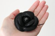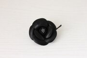 漆黒のつやが美しいカメリア(つばき)のコサージュです。ミニサイズなのでブローチのように気軽に着けられます。中心にグレーのグラスパールをあしらいました。