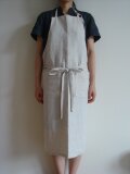 デザインは胸あて付きで汚れが気にならず、どんな場面でも重宝します。普段使いから、ホームパーティーにもおすすめ。首紐は、首にかけてループで結んで調整するタイプ。微妙な長さ調整が可能です。バックスタイルは重なり部分が多く、スタイリッシュにみえます。(写真モデルの身長は150cmです)