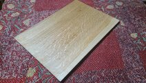 木目より少し斜めに白く所々に走っているのは、ナラ特有の虎斑と呼ばれる杢目で、光の加減で