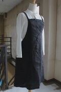 リネンで作製したサイドギャザー入りワンピースエプロン
