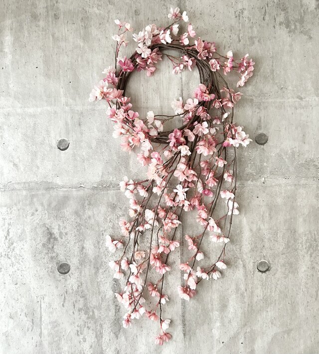 アーティフィシャルフラワーの枝垂れ桜の華やかなリース
